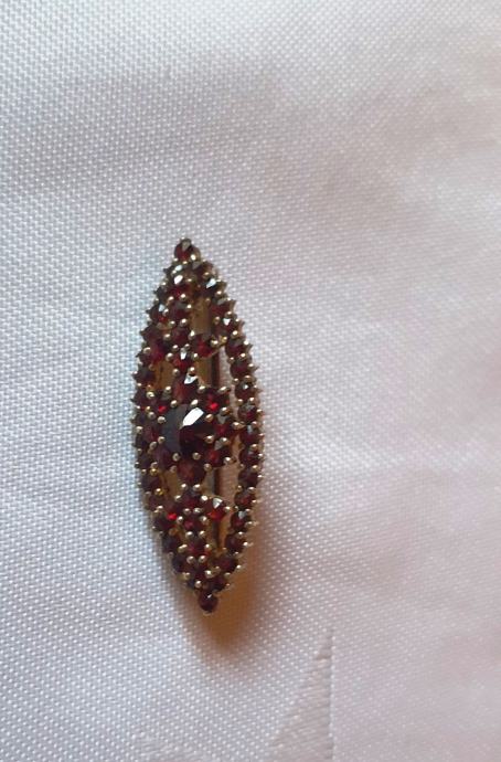 Broš sa granatima. Pozlaćeno srebro. Zemlja porijekla Češka - Prag. Duljina 4,5 cm