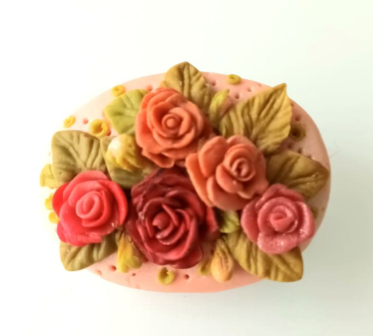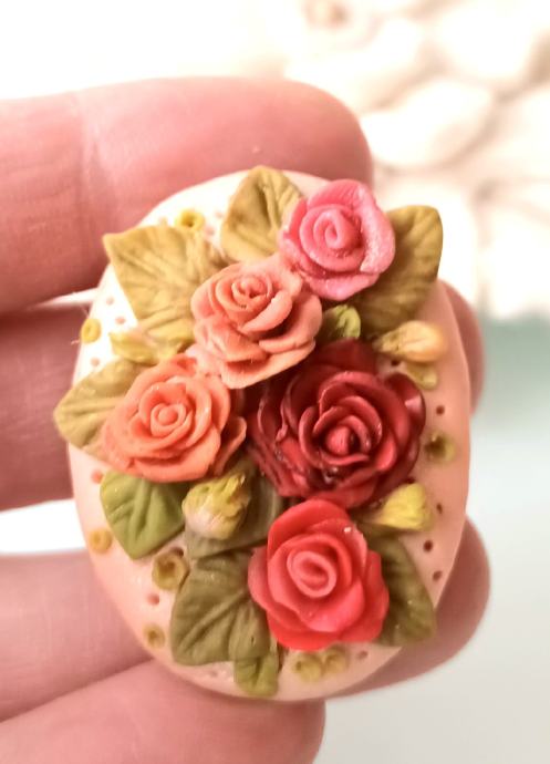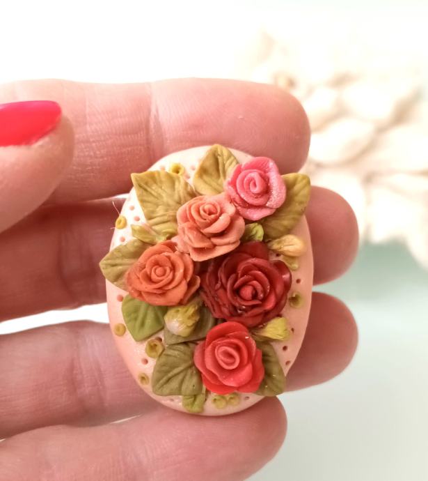 Bros raden od polimerne gline, filigranski rad.Unikat.