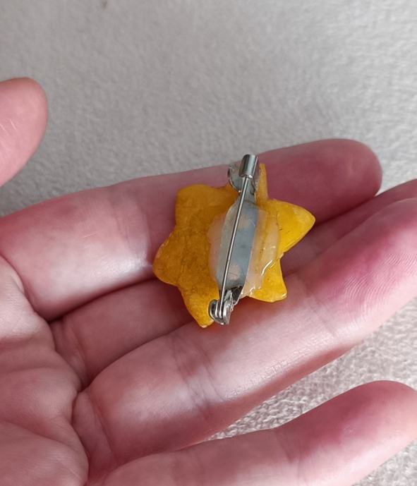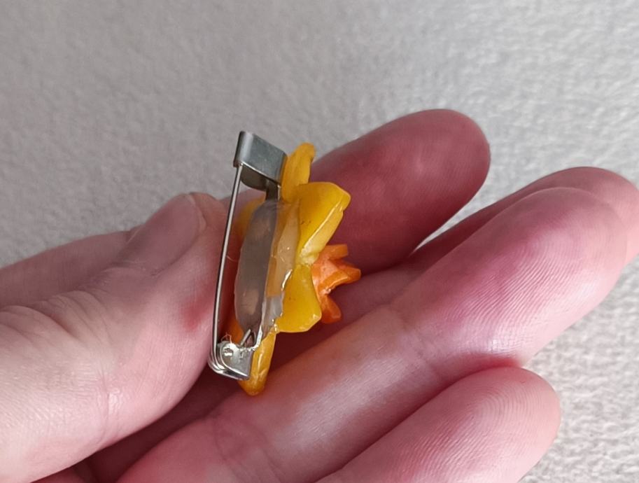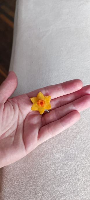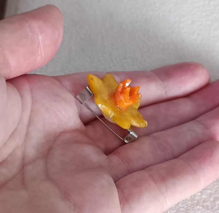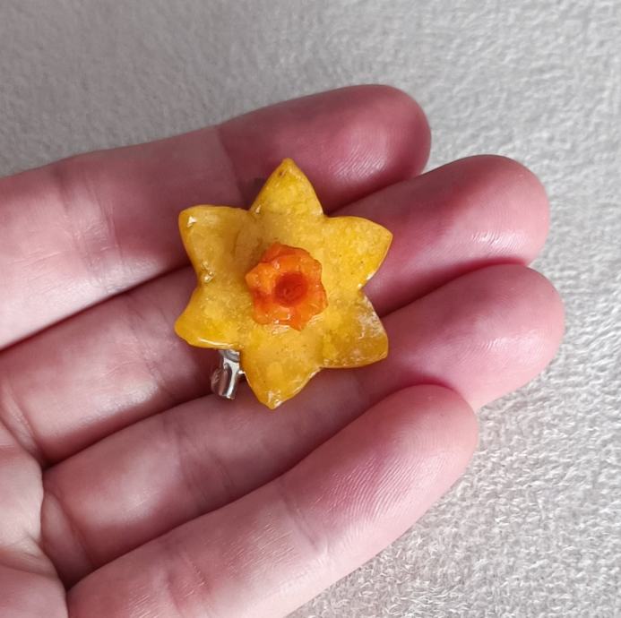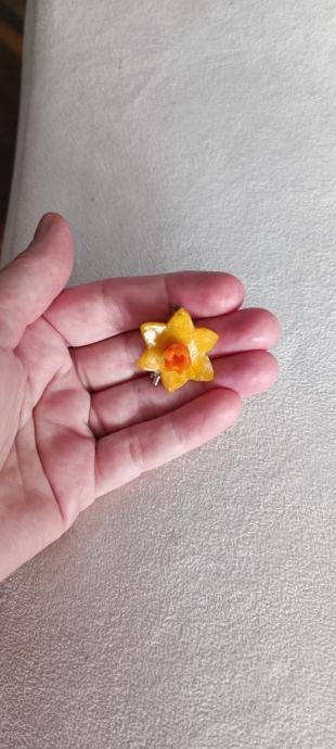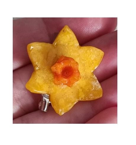 Broš žuto-narančasta narcisa ručni rad. Unikatni komad nakita.