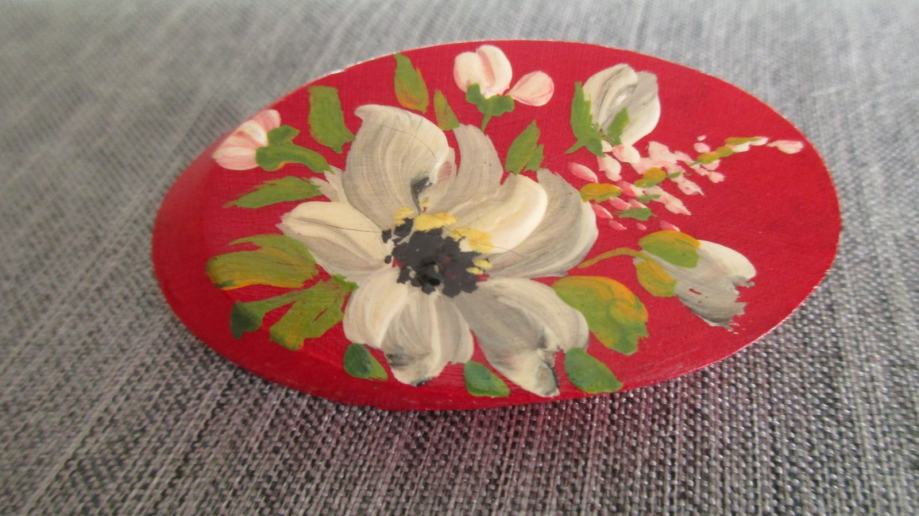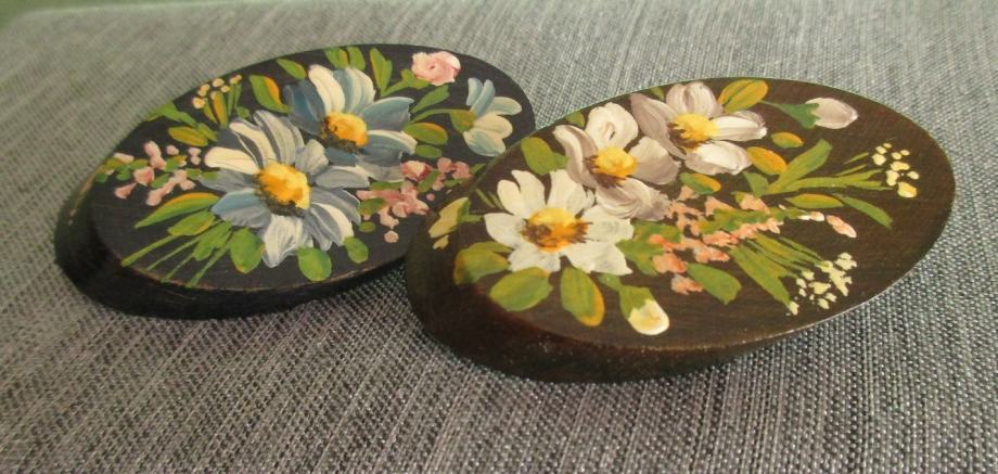Lijepi vintage, drveni broševi, ručno izrađeni i oslikani - novi.