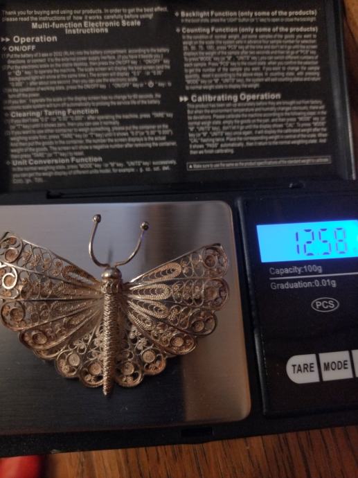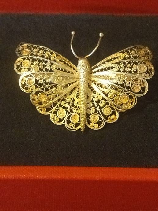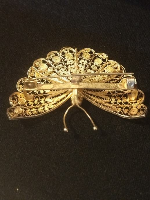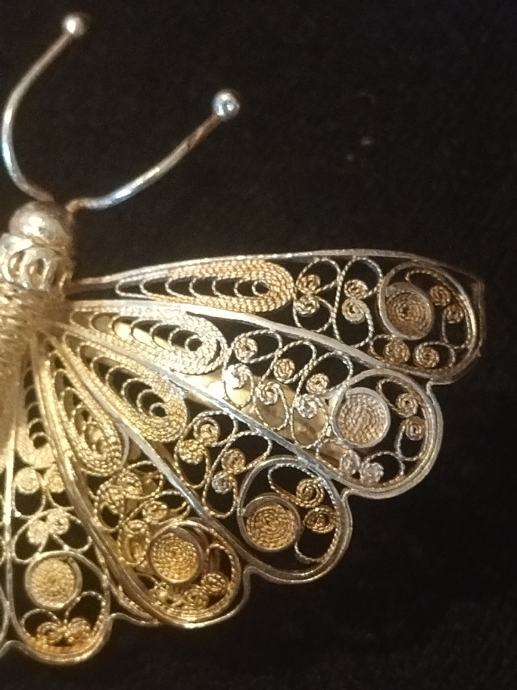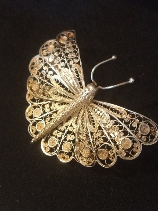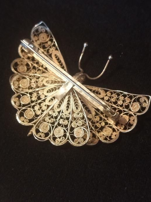Prekrasan veći srebreni broš u obliku leptira. Izuzetno kvalitetna filigranska izrada.