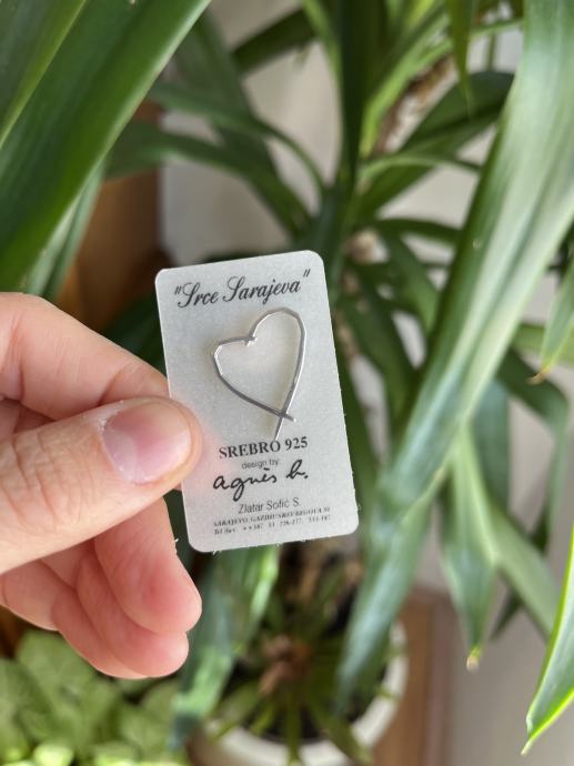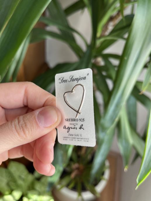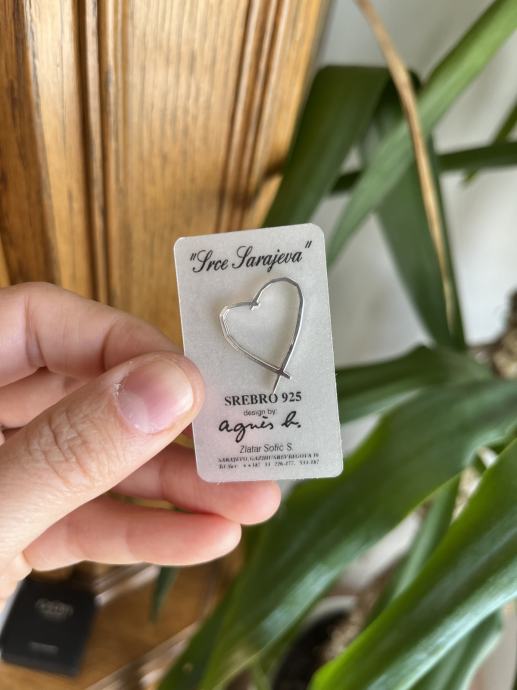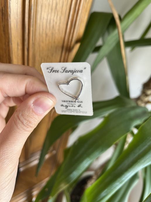 Srebrni broš-srce Sarajeva, 925, novi, dizajnerski, zlatar Sofić.