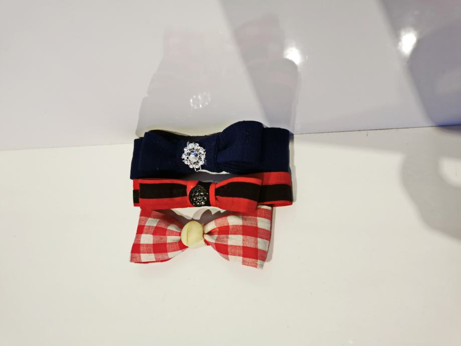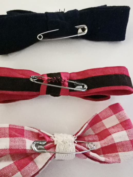 Unikat mašne - broševi, 3 komada, tamnoplava - crvenocrna - bijelocrvene kocke