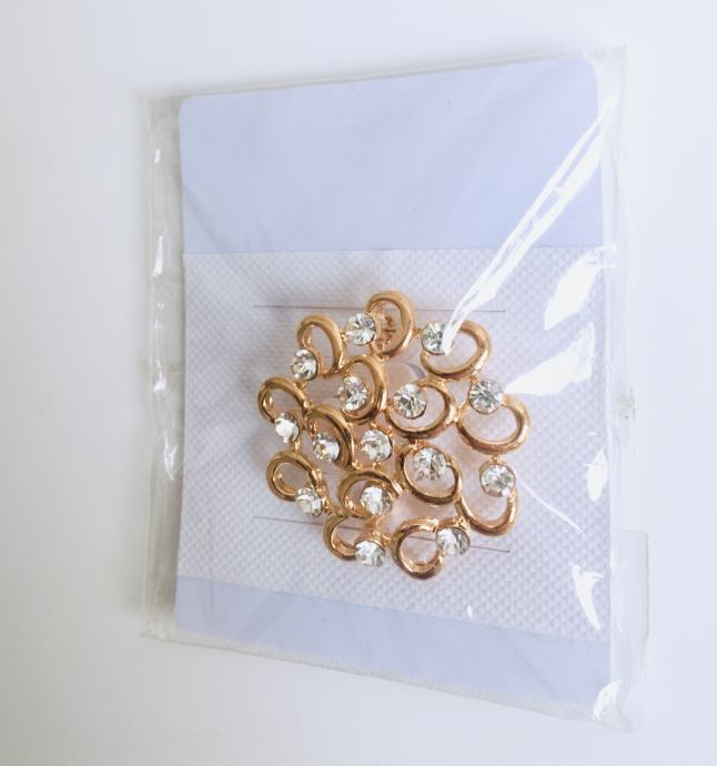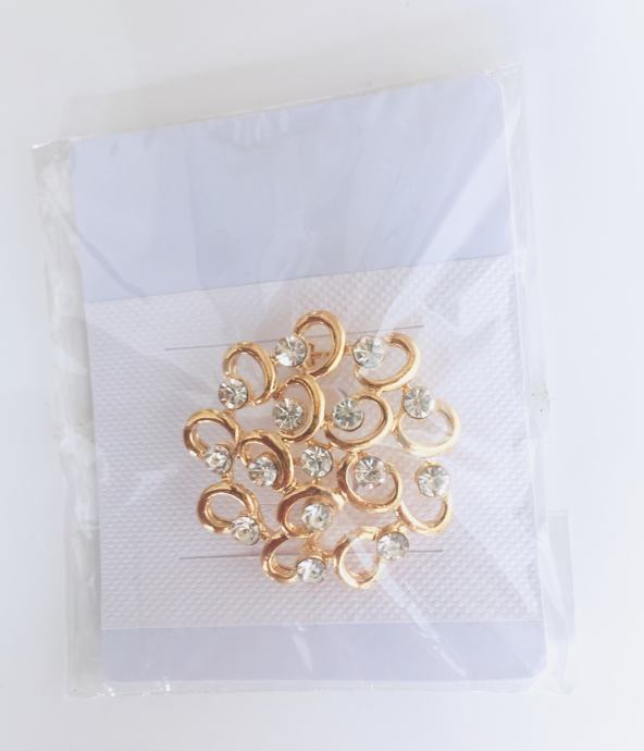 ZLAĆANI BROŠ S KRISTALIĆIMA - potpuno novi, nenošeni, decentni i sjajni.
