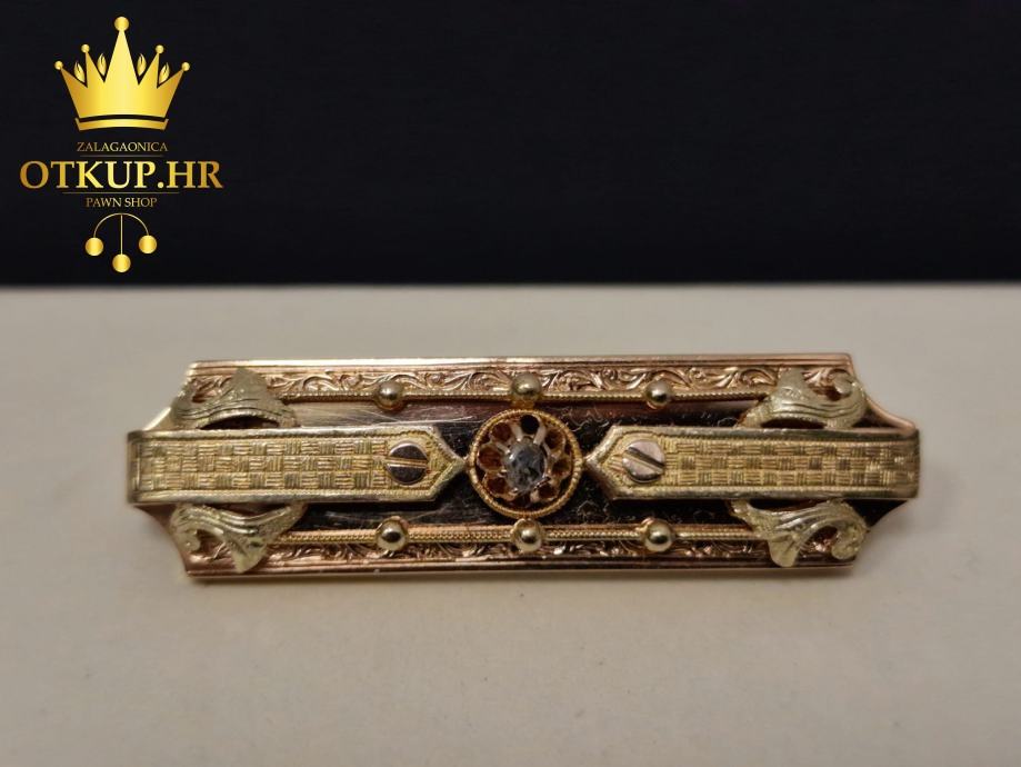 Prodajemo broš od 14 karatnog zlata s dijamantom "old mine cut"