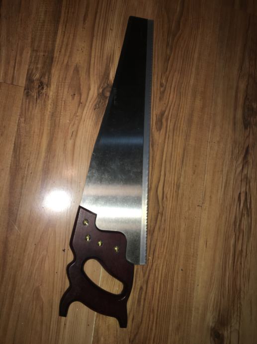 Pila na slici je klasična ručna stolarska pila namijenjena preciznom piljenju drva.