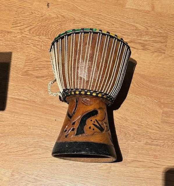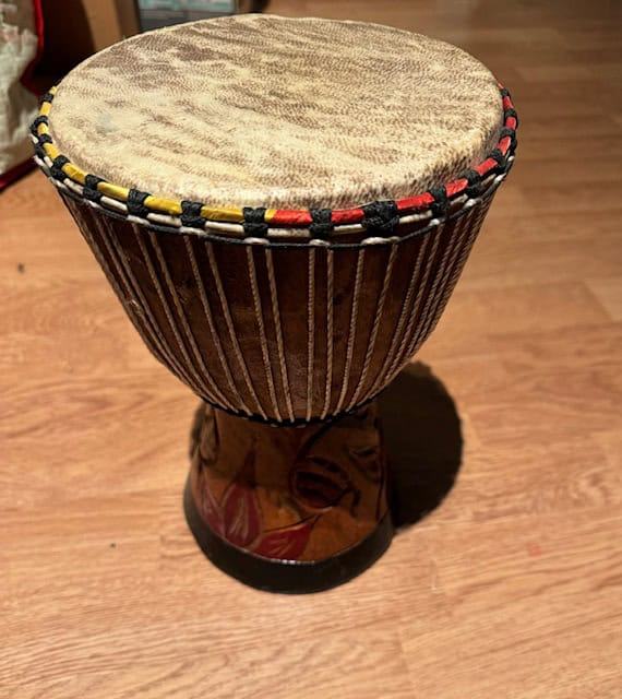 Afrički bubanj Djembe sa rezbarijama, vrlo lijep zvuk. Idealan poklon sebi ili nekome tko se bavi muzikom.