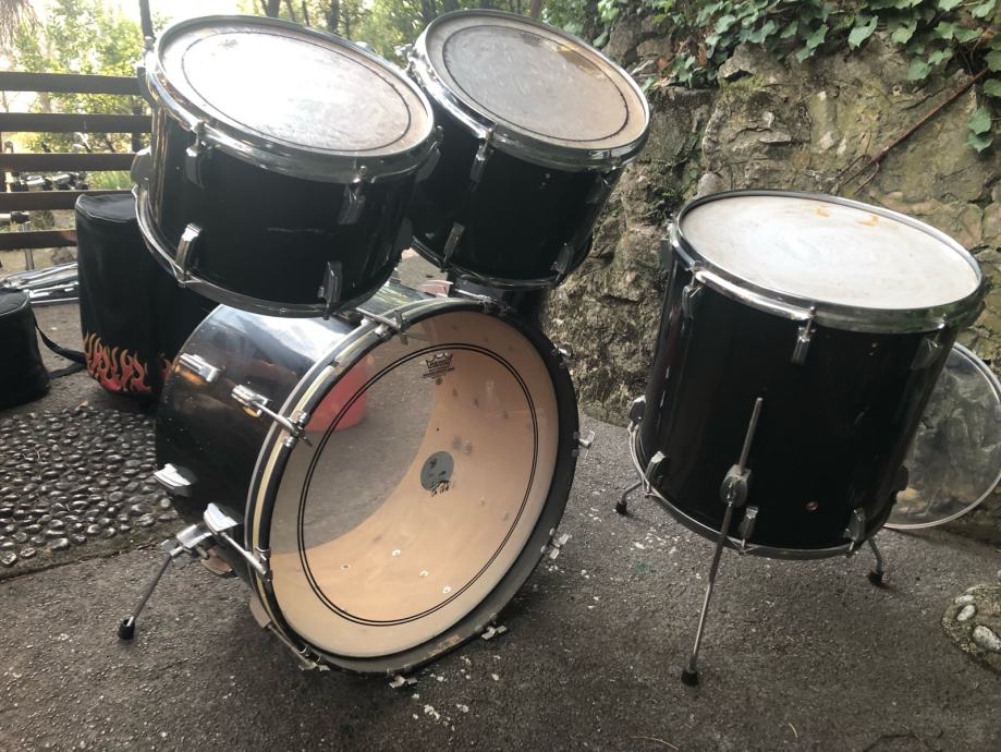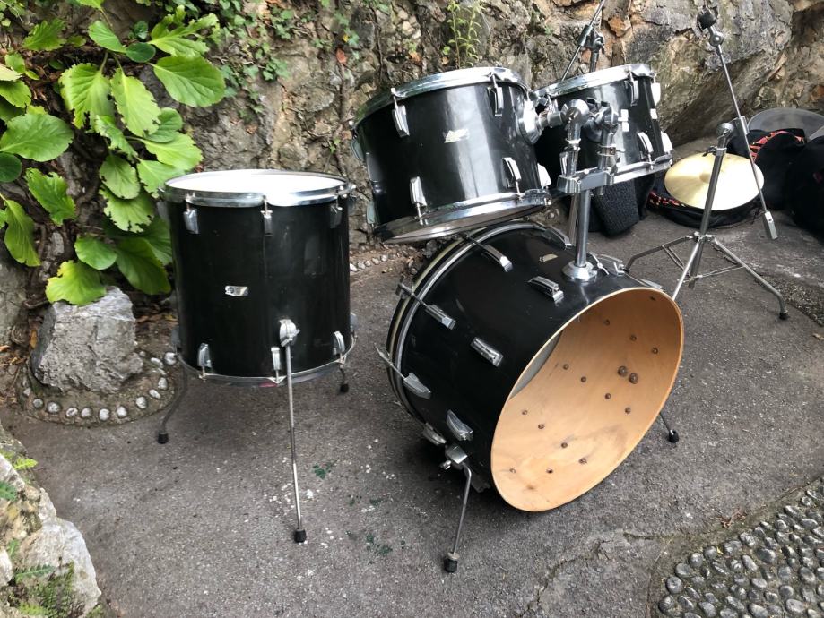 Prodajem unikatan Amati set bubnjeva iz 60-ih. Stanje je dobro s obzirom na godine, znakovi starosti prisutni. Dimenzije su 22 kasa i tomovi 12,13,16. Uz bubanj dolaze holderi za tomove, dva stalka za činele iz originalnog seta i ride činela 20” koja je išla uz set.