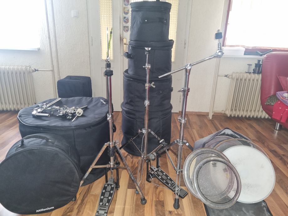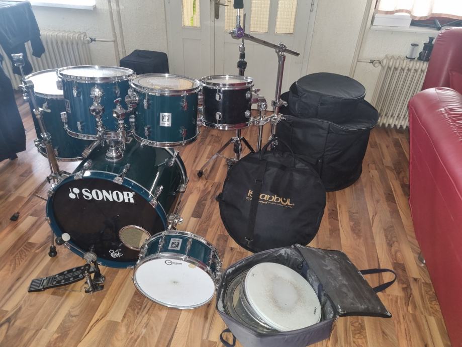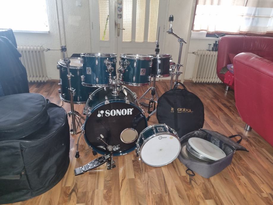 Prodajem Sonor Force 3001. Dimenzija 22,10,12,13,14 snare i 16 floor. Bubanj ima malo oštećenje na floor tomu. Prodaje se bubanj, sonor pedala, 2 stalka i stalak za hi hat. (Stalak za snare nemam) i 10 tom ddrum. Bubanj dolazi s torbama. Također poklanjam zamjenske opne uz to.