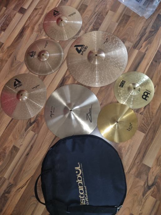 Također prodajem i Paiste alpha medium hats 14, medium crash 16, full ride 20, Zultan Aja crash 18 i dvije 12 inch splasha s torbom. Činele su korištene ali nisu nigdje napuknute.