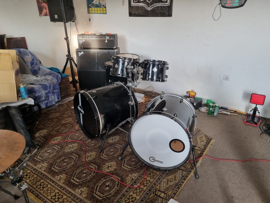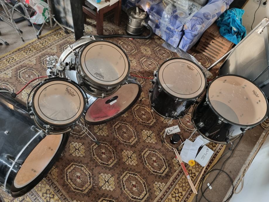 Na basu su slabo korištene Aquarian opne. Superkick II i Regulator. Na drugom basu su tvorničke opne. Remo Pinstripe Clear opne su na tomovima 10, 12 i 14. Remo Emperor Clear je na 16" flooru.