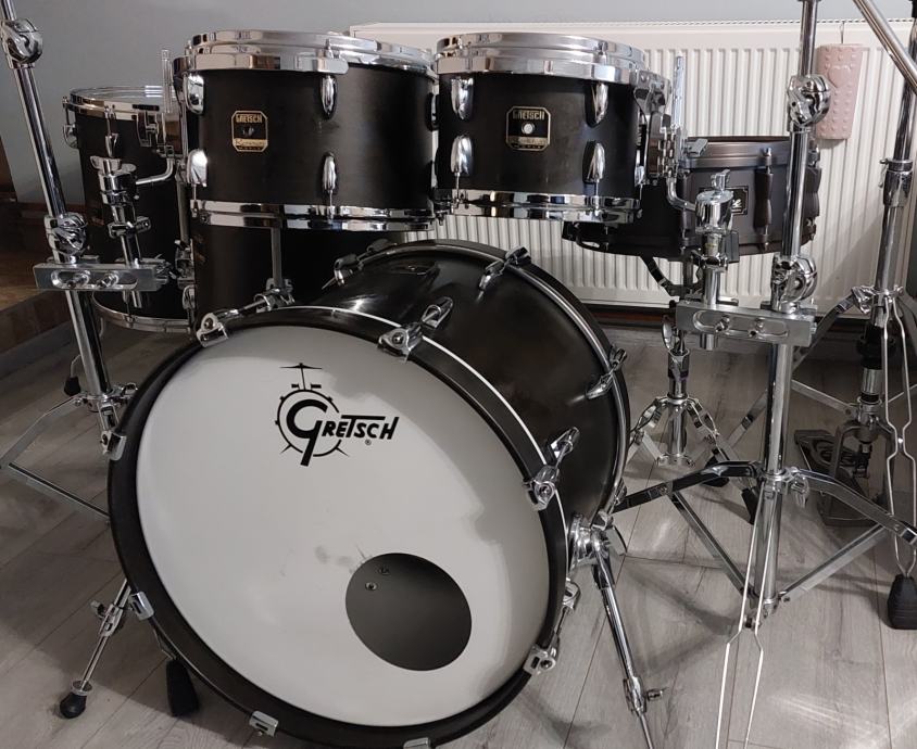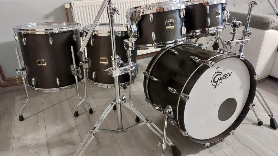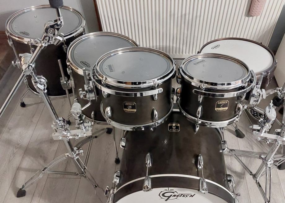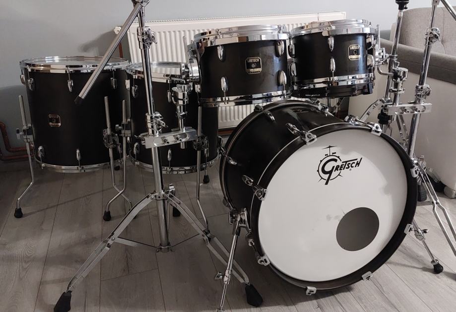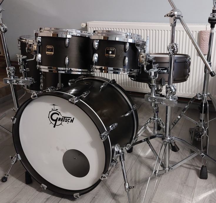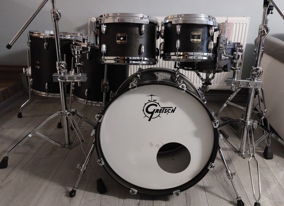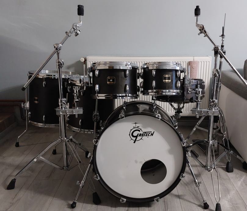 Bubanj je kao nov, dimenzije kick 20x14, tomovi 10x7, 12x8, 14x14, 16x16, tom holderi. Bubanj bio samo u studiu... Drvo je čisti (javor), satin ebony finish.