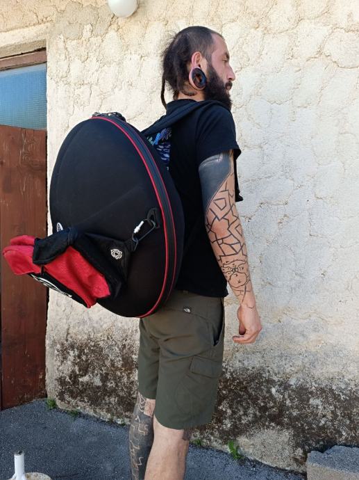 Bubanj dolazi sa svom pratećom opremom. Originalna Vibe Handpan torba za nošenje. Torba je čvrsta I izolirana, sto čini vaš bubanj sigurnim u transportu. Uz torbu za nošenje dolazi I mala prateća torbuca koju mozete prikačiti na veliku torbu ili pak je zasebno nositi.