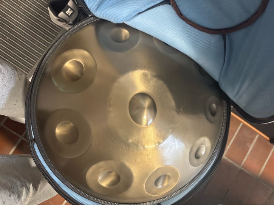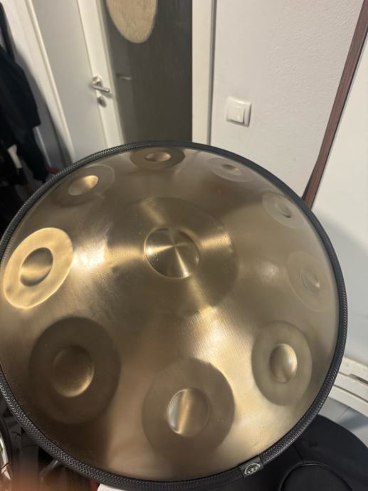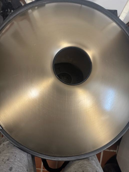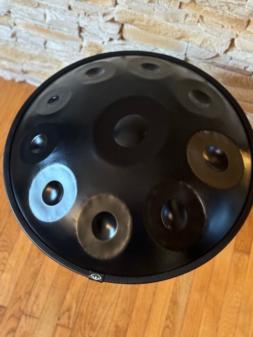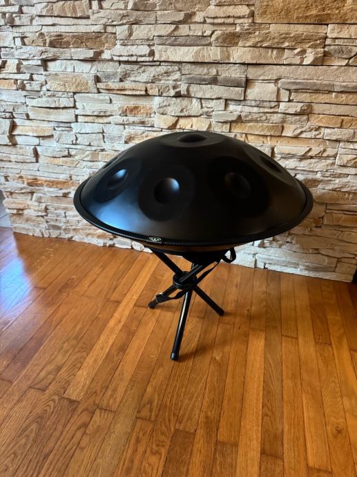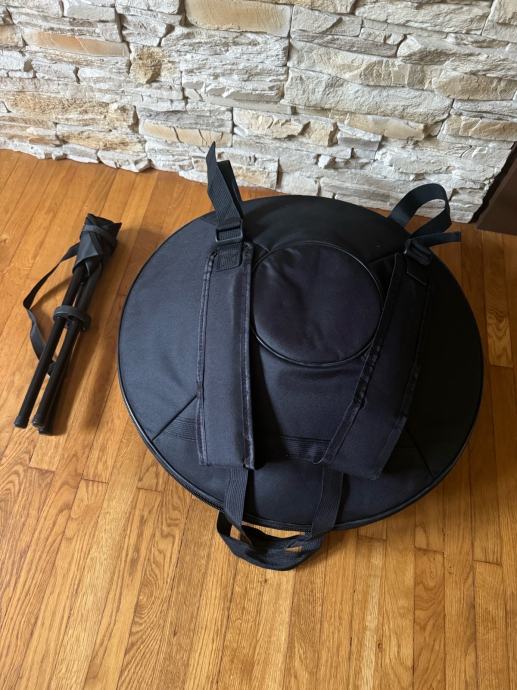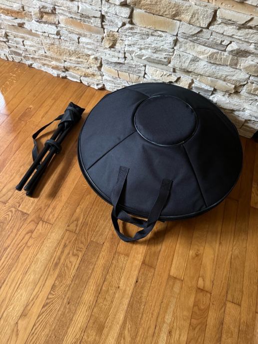 Zbog nedostatka vremena prodajem NOV!! profesionalni bubanj handpan 440Hz ili 432Hz standardnih 10 nota u D-molu + podstavljenu torbu sa naramenicama za nošenje i spremanje + stalak.