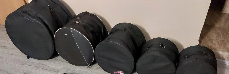 Torbe su kvalitetne, debele, dimenzije 22,10,12,14,16, +torba za činele (nije na slici ).komplet sa slike 150