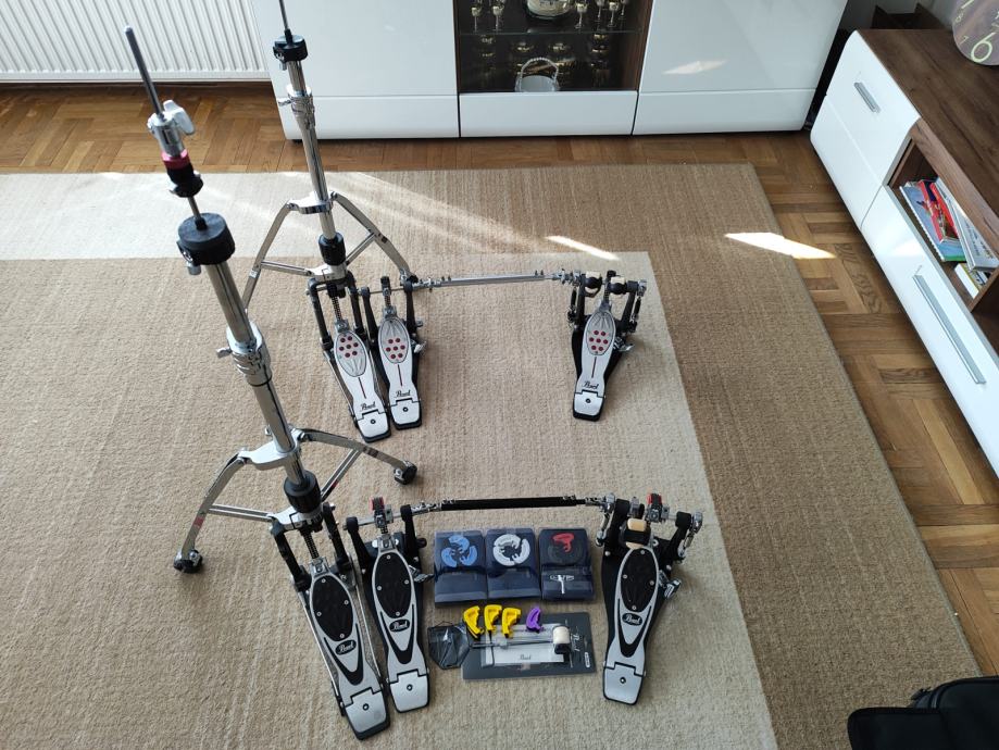 Prodajem Pearl Eliminator H-2000C Stalak za Hihat i Duplu bas pedalu Pearl P2002C PowerShifter Eliminator.