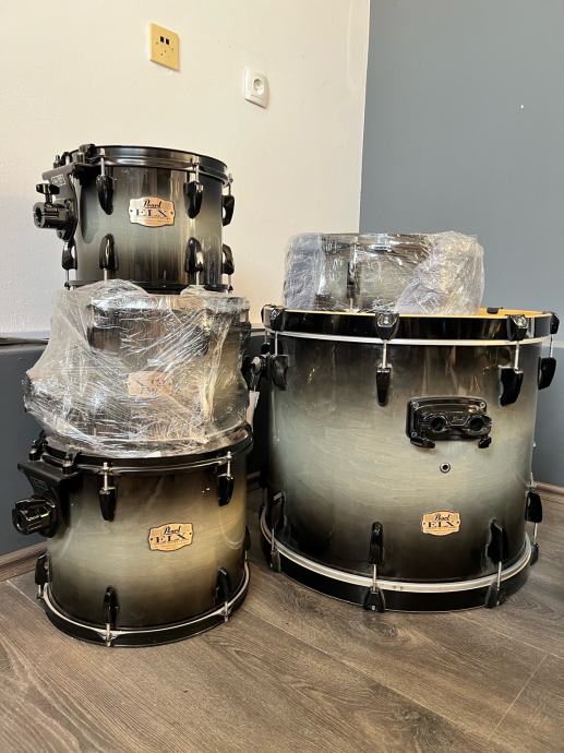 Pearl ELX export series u očuvanom i odličnom stanju s dimenzijama 14”, 10”, 12”, 14”, 22”