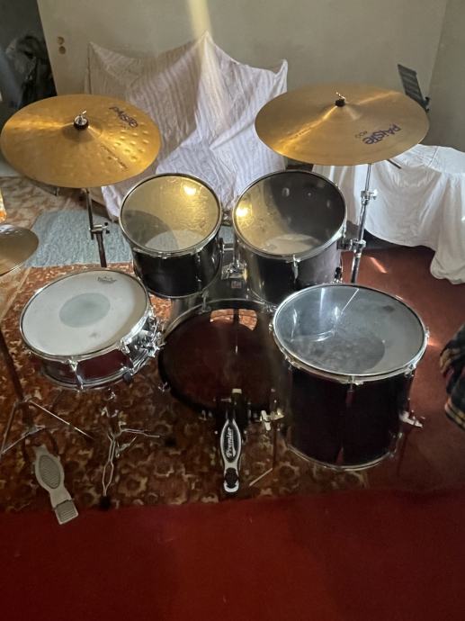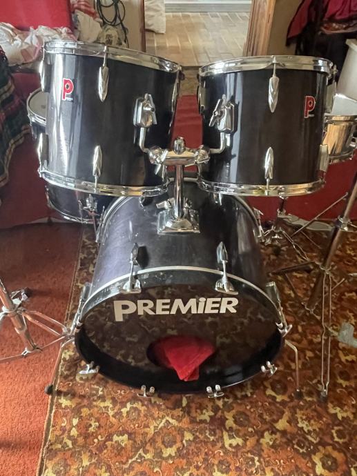 Premier APK Royale circa 1985 u dimenzijama 22,12,13,16 i 14x5.5 Yamaha steel snare, sa stalcima i činjelama i bas pedalom. Za 400€ je u setu 14 meinl hihat, 14 meinl crash i 18 Paiste pst 7 heavy crash/(ride) ili za 500€ Paiste 400 Set sa:14 hihat 16 crash i 20 ride.