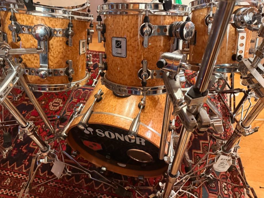 Prodajem gore navedeni SONOR Designer sa rijetkim 18 incha bas bubnjem samo je prvi tom 8x8 Delite furnir Birdseye Amber bubanj je kao novi ne šaljem poštom samo osobni prikup dolazi u obzir.Cijena nije fiksna.U prilogu je demo video kako bubanj zvuči sa dobošem Benny Grebom koji je potpisan od strane istog.Cijena nije fiksna.