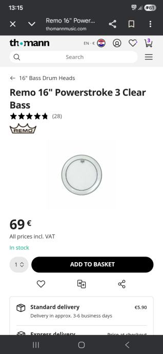 Nova plastika remo powerstroke clear 3 za kick 16"
