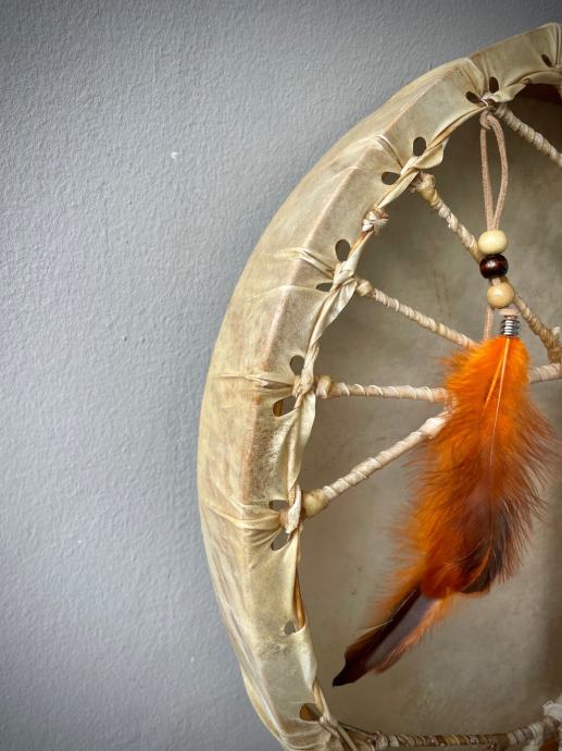 ❤ Hvatište: obloženo je prirodnom kožom radi boljeg i udobnijeg prihvata, osobito tijekom duljeg bubnjanja ili ceremonijalne upotrebe.