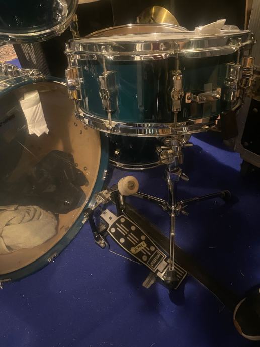 Pedalka, snare, stalica za snare, stalica za hi hat i stalica za ride, hi hat cinela i ride cinela.