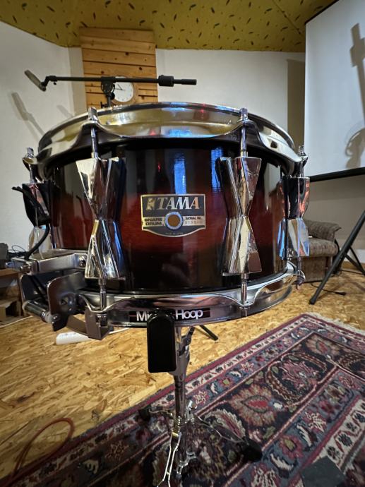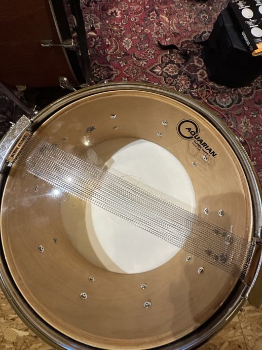 Jedan fini snare starijeg godista,u jako dobrom stanju.Davno je imal chrome wrap al mu Neno Boric dal novo ruho pa je sad ko nov.Bibin mrezica nova,reso Aquarian opna,gore Evans par proba odradeno.Visak mi pa me zamjene ne zanimaju.Za ozbiljnog kupca saljem snimku.