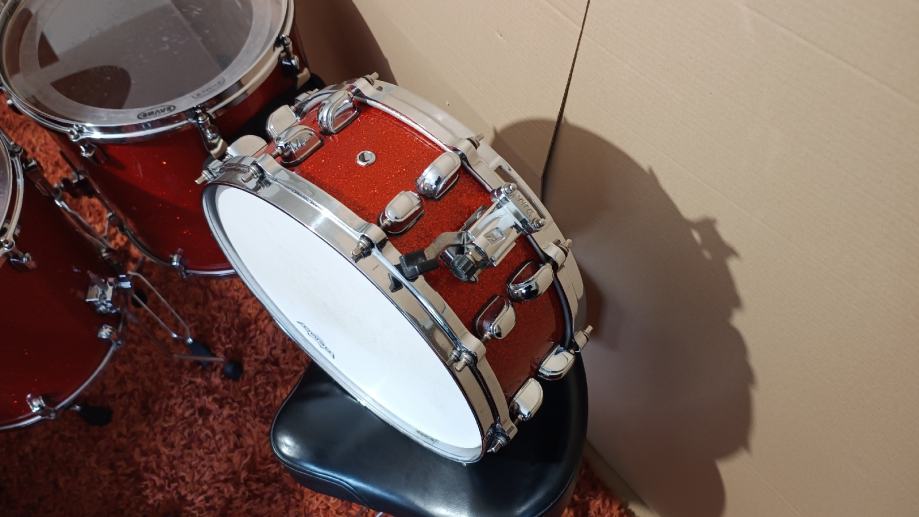 Dimenzije: Bass 22x18, Snare 14x5,5, Tomovi 8x7, 10x8, 12x9,