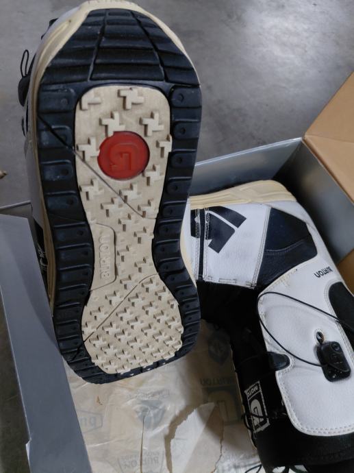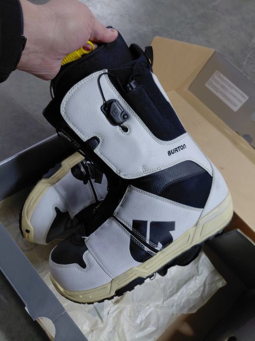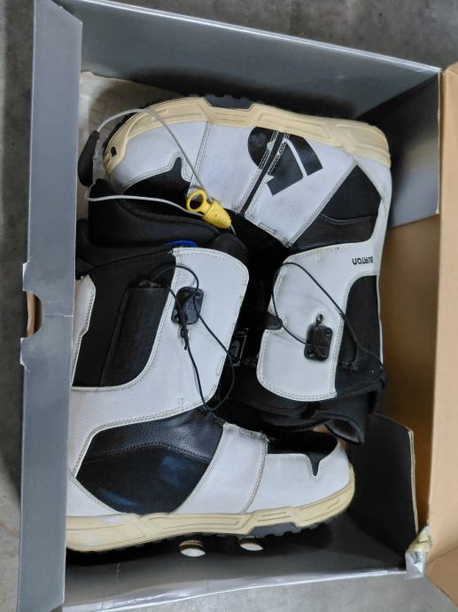 Prodajem Burton moto buce black and white, velicine 44, koritio 2 sezone po tjedan dana i nakon toga sroje u ormaru.