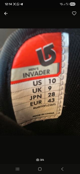 Prodajem snowboard buce Burton Invader broj 43 – rabljene, ali u jako dobrom stanju!
