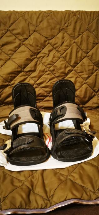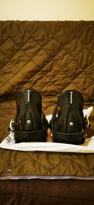 Vezovi: marka Static, klasični strap sistem sa ratchet kopčama. Podešavaju se na većinu snowboard daski (standardni diskovi). Odličnog stanja, strapovi elastični i čisti, sve radi perfektno.