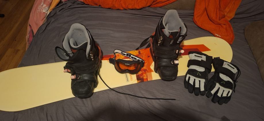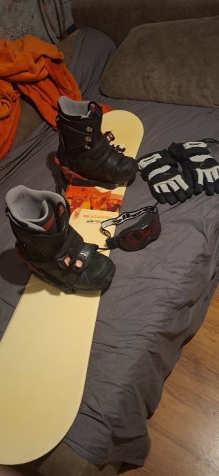 Snowboard kompletan sa cizmama rukavicama i naocalama spreman za voznj