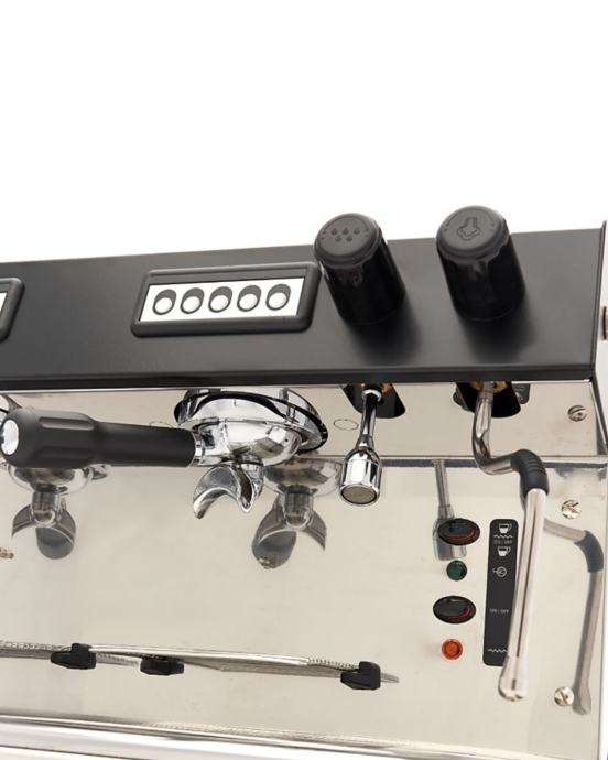 Ovaj visokokvalitetni espresso aparat je pravo pojačanje za svaki ugostiteljski objekat. Ne samo da ima niz funkcija, već je i veoma pouzdan. Ima luksuzan i elegantan izgled zahvaljujući prelepoj crnoj metalnoj kućištu. Ima bojler zapremine 18 litara i sposoban je da pripremi do 540 šoljica na sat. Takođe je opremljen jednom grupom sa direktnom preinfuzionom komorom. Dostupne su četiri opcije doziranja espressa: espresso, double espresso, dva espressa i dva double espressa. Drip filter je izrađen od hroma, a prostrana drip tacna je od nerđajućeg čelika.