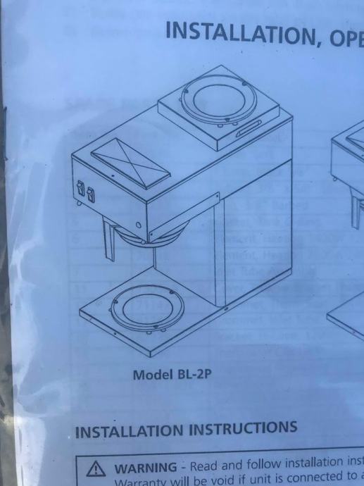 Model BL-2P ima dva grijača; jedan ispod glave za kuhanje, a drugi na vrhu. Osvijetljena toplija sklopka označava kada su grijači "Uključeni". Ovaj uređaj ima uski profil koji štedi prostor (širok 8,5 ").