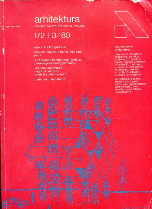 Postmoderna arhitektura: tekstovi Fedora Kritovca, Žarka Domojana, Slavka Dakića, Aleksandra Milenkovića, Edvina Šmita, Charlesa Jencksa, Radovana Delalle, Ješe Denegri, Sene Sekulić Gvozdanović, Ognjena Čaldarevića, Dunje Rihtman Augusštin, Bogdana Bogdanovića, Marijan Hržića
