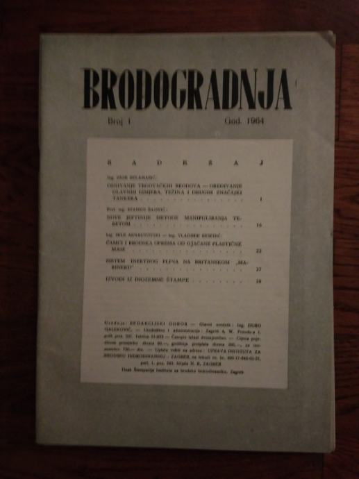 ČASOPISI BRODOGRADNJA br. 1-6 / 1964.