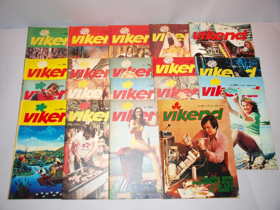 Prodaju se 19 komada časopisa Vikend iz 1973. godine i jedan iz 1979. godine. Časopisi su odlično očuvani.