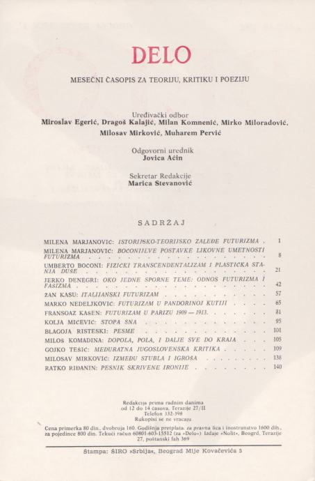 DELO, Italijanski likovni futurizam, Beograd, januar 1982.