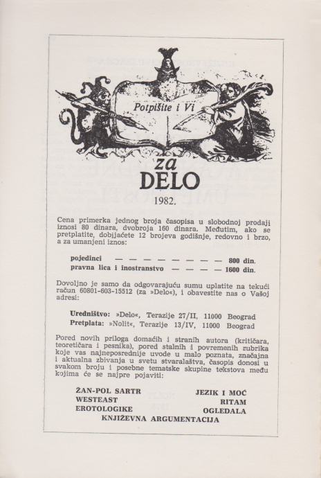 Mesečni časopis za teoriju, kritiku i poeziju.