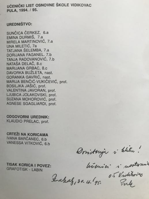 Dragi kamen - učenički list OŠ Vidikovac iz 94./95.