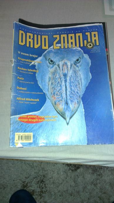 Prodajem enciklopedijski časopis za mlade "Drvo znanja" od broja 27 do 75. Broj 27 je izašao u Rujnu 1999. godine. Više informacija o samom časopisu potražite na sljedećem linku http://www.drvoznanja.com/ Mislim da je časopis izlazio do 2013 godine. Časopisi su u dosta dobrom stanju osim brojeva 27 i 75 koji su bili prvi i zadnji u slogu pa su oni malo ishabani. Uz časopise idu i posteri svaki sa svojim izdanjem. Iz moje kolekcije (od broj 27 do 75) sljedeći brojevi su rasprodani: 29, 31, 34, 35, 36, 55. Prodaja časopisa sa pripadajućim posterima može i po komadu, u tom slučaju cijena je 10 kn plus poštarina. Osobno preuzimanje u Slavonskom Brodu. Moguće slanje poštom, kupac plaća poštarinu.