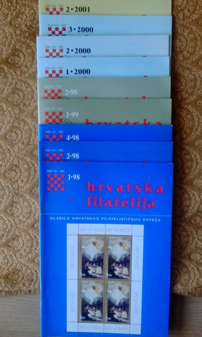 Časopis Hrvatska filatelija, glasilo Hrvatsko filatelističkog saveza, brojevi 1 i 3 - 95, 1–4 - 96, 1–4 - 97, 1, 2 i 4 - 98, 1 i 2 - 99, 1–3 - 2000 i 2 - 2001. Stanje vrlo dobro/odlično. Cijena 0,50 € po primjerku.