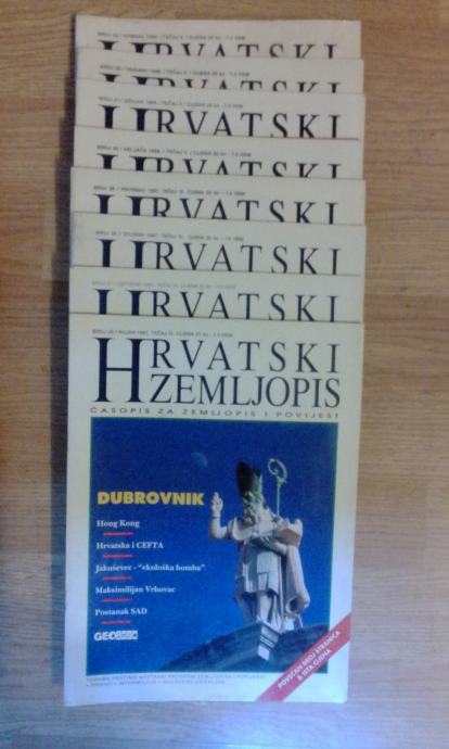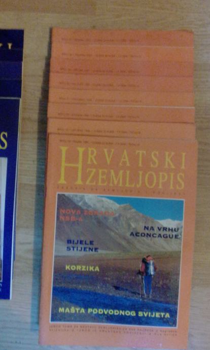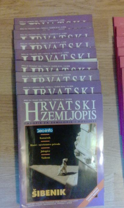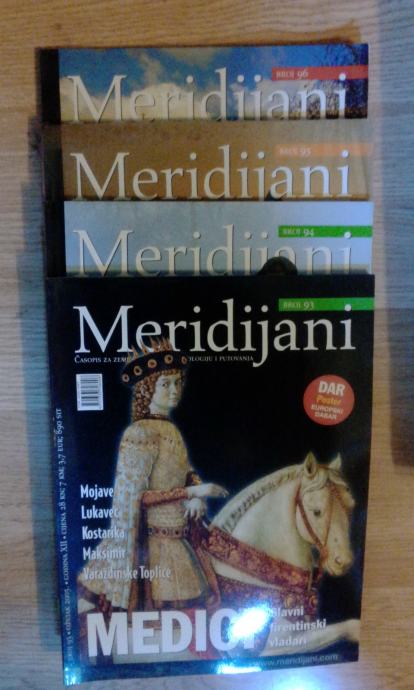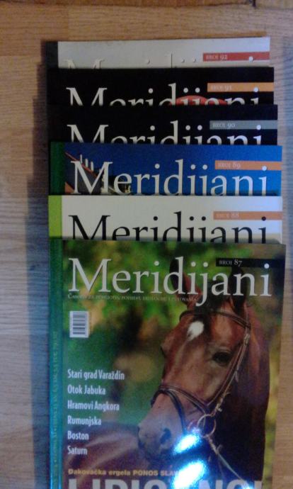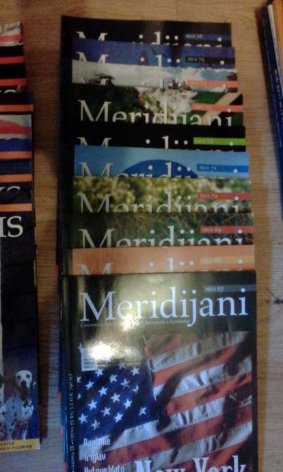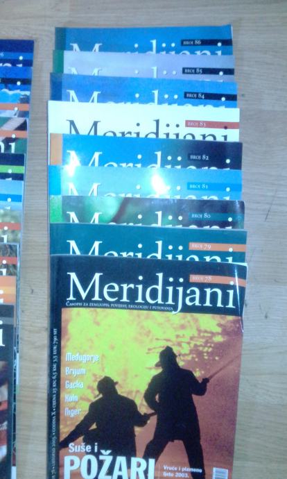 Časopis Hrvatski zemljopis/Meridijani, brojevi 14-18, 26, 27, 39-43, 45, 48-50, 56-64, 70-76, 78-81, 83-96 te posebno izdanje Klimatologija. Stanje vrlo dobro/odlično. Cijena za sve (51 broj).