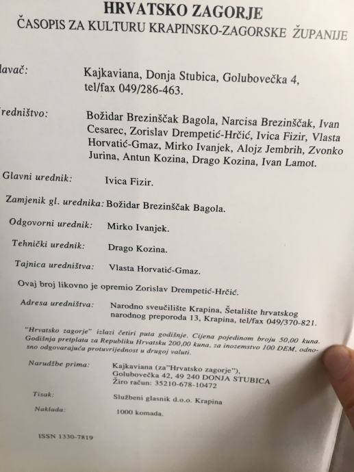HRVATSKO ZAGORJE, ČASOPIS ZA KULTURU KRAPINSKE-ZAGORSKE ŽUPANIJE,