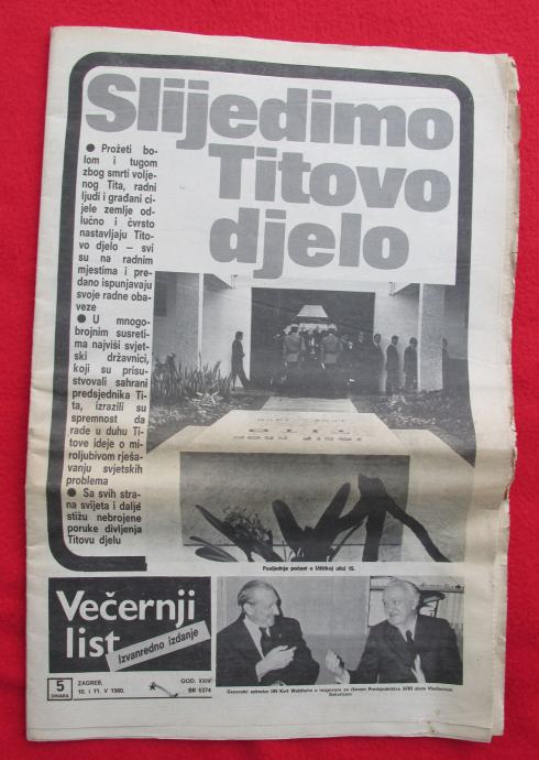 JOSIP BROZ TITO - SMRT I SAHRANA, NOVINE, 10 KOMPLETNIH BROJEVA, 1980.
