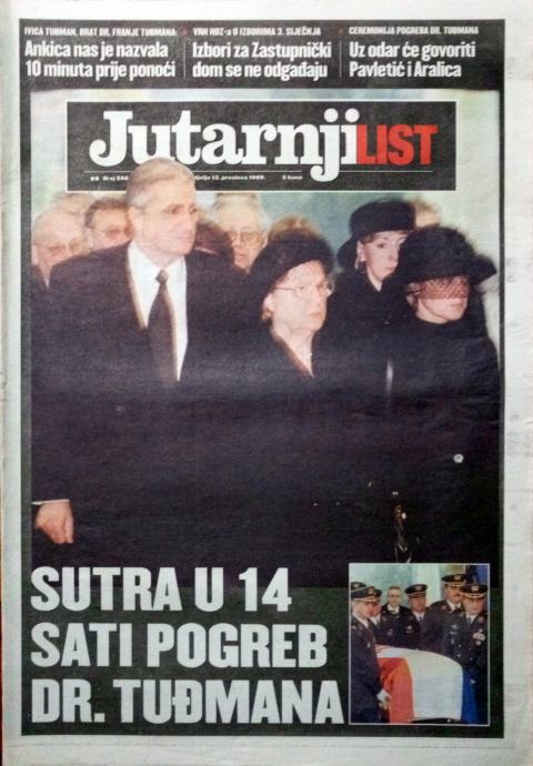 Broj 596 Jutarnjeg lista (posebno izdanje: smrt Predsjednika dr. Franje Tuđmana), odlično očuvan.