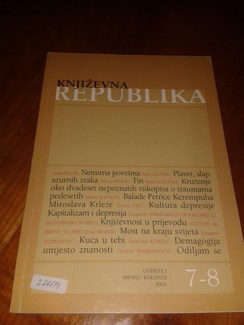 Književna republika, časopis za književnost, Zagreb, godište I, srpanj/kolovoz, 2003., broj 7-8