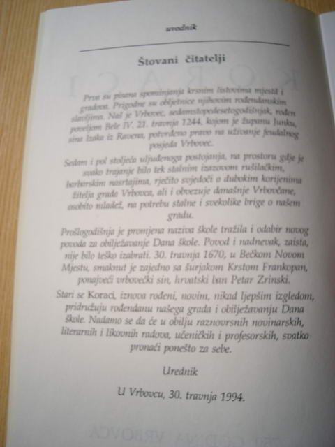 Koraci, 1994.g. učenički časopis srednje škole Vrbovec