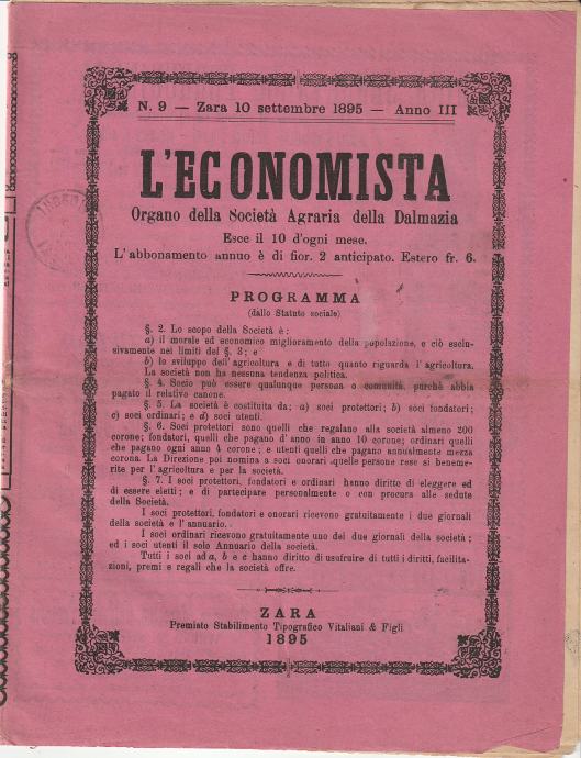 LECONOMISTA DELLA DALMAZIA ZARA 1895