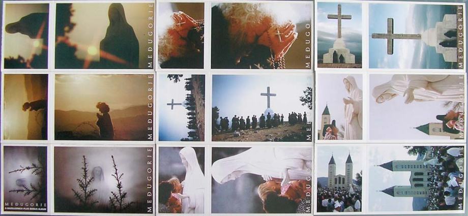 Međugorje - komplet od 9 različitih razglednica, plus bonus mini album (posaljite razgledice a album sa svih 9 motiva ostavite kao uspomenu). Razglednice su luksuzne, čvrste, sa sjajnim lakom - nećete se razočarati. Ekskluzivno iz arhive Glasa mira, prvog službenog časopisa Međugorje.